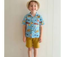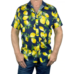 Citrus Abstract Cotton Voile S/S Big Mens Shirt - Navy/Yellow