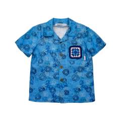 Kids Linen Shirt-Andy Blue Cosmic Dust is semi fitting style shirt. The shirt is featuring zinc alloy button that are highly decorative. An extra element on this Kids linen shirt is crochet detail on its pocket. Each shirt will feature different crochet detail. We use pure cotton yarns for the crocheting those granny squares. Prior to sewing these to the pocket these granny squares need to be washed. Because cotton yarns can shrink in the wash and that helps to prevent any distortion and shrinking. Cotton yarn is colorfast, so there are no colors leaching into the fabric. These pocket squares are our unique idea. They are attached by sewing machine with straight stitches that are easy to unpick if you prefer. I am also open to any request for a different color combination granny square. Any request can be placed by email or through message on Instagram.