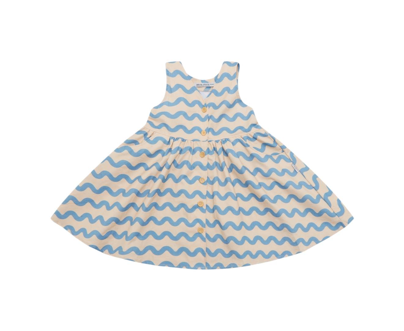 We love designing and making Ivy Organic Cotton Dress with pink waves in our Sydney studio. It uses an organic cotton twill. In sum, this fabric is soft yet very durable. It can last for more generations if you pass it down.